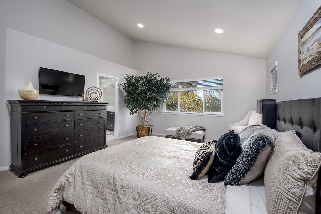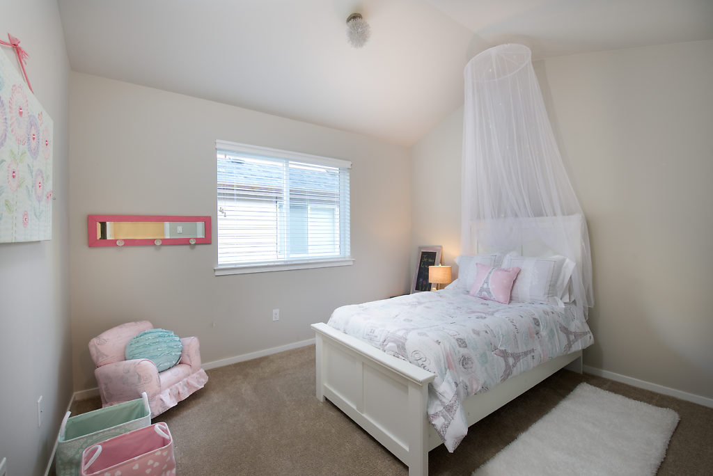 This spacious master retreat has a walk-in closet, and a five-piece ensuite bath.